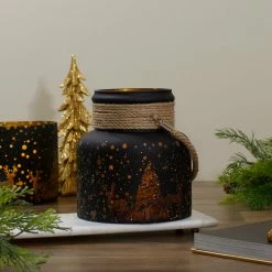 Northlight 8-Inch Black With Brushed Gold LED Snowman And Christmas Trees Snow Globe Lantern