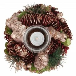 Northlight 7.5″ Pink And Gold Embellished With Glitter Pine Cone Christmas Votive Candle Holder