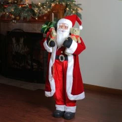 Northlight 60″ Traditional Santa Claus With Teddy Bear And Gift Bag Standing Christmas Figure
