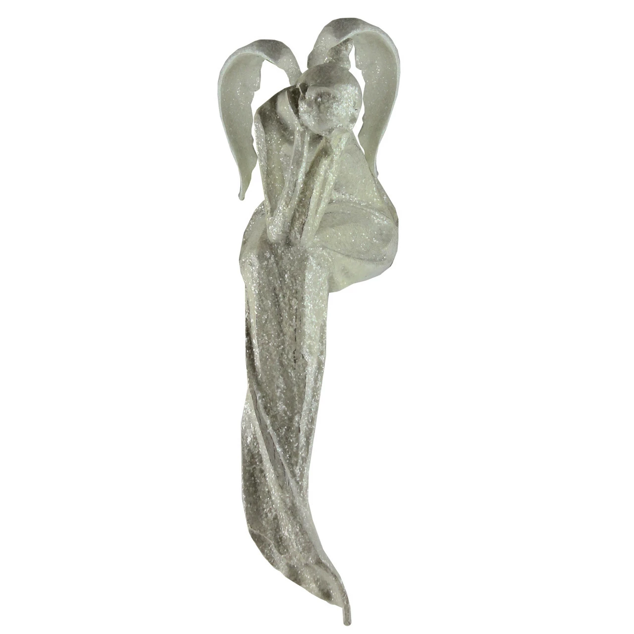 Depicts an angel sitting with her hands under her chin thinking wishful thoughts