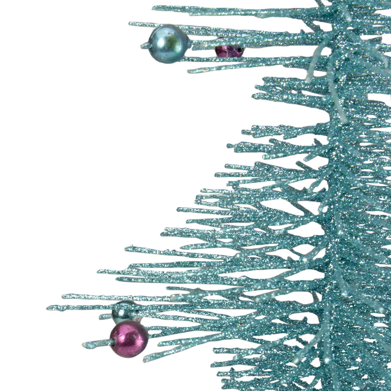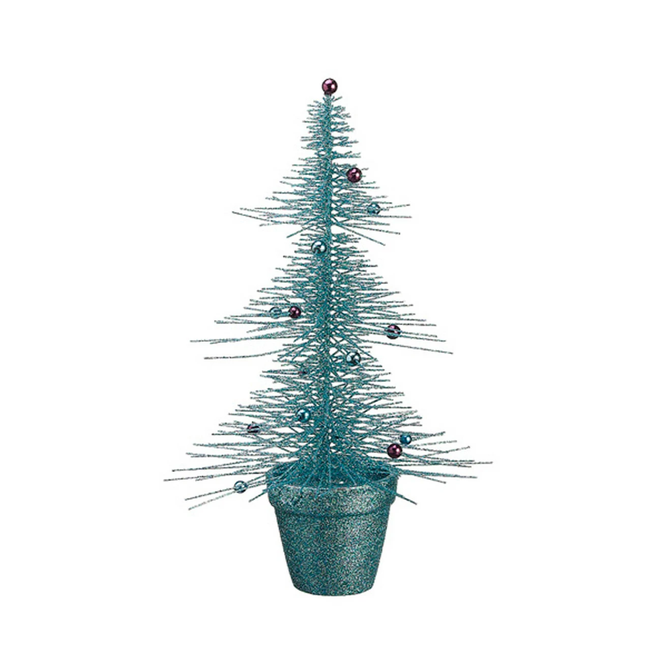 Sharp looking table tree is drenched in turquoise glitter