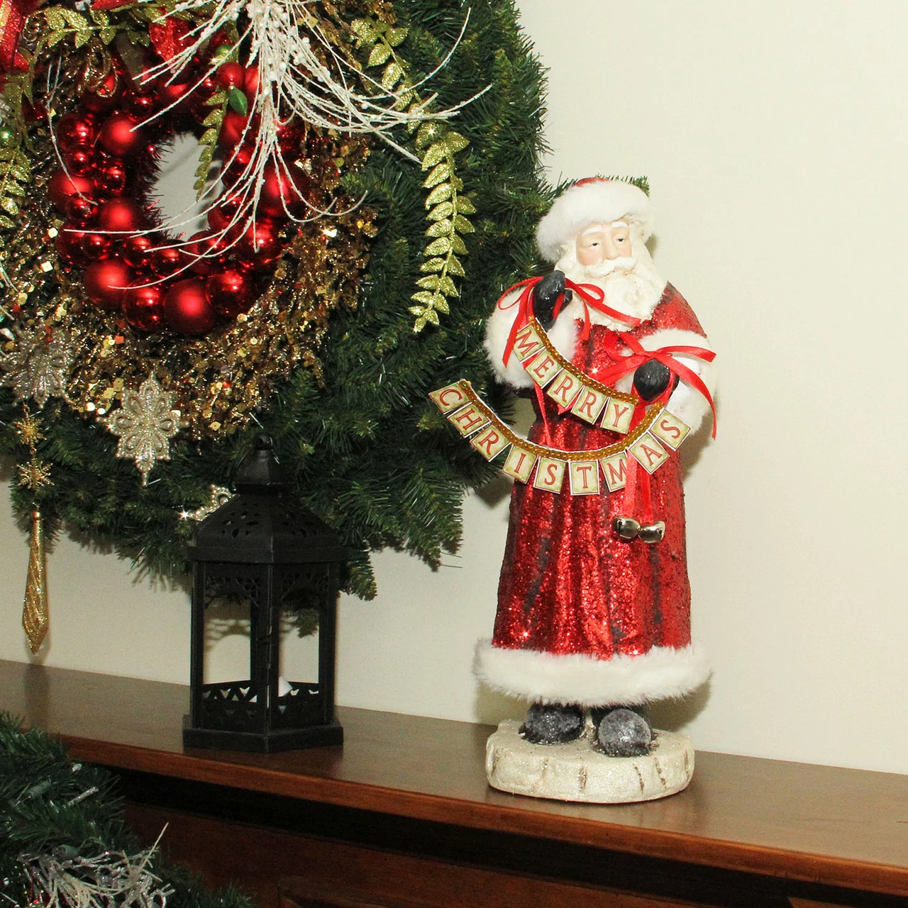 Santa is carrying a “Merry Christmas” sign joined with jingle bells that make a pleasing jingle sound when moved