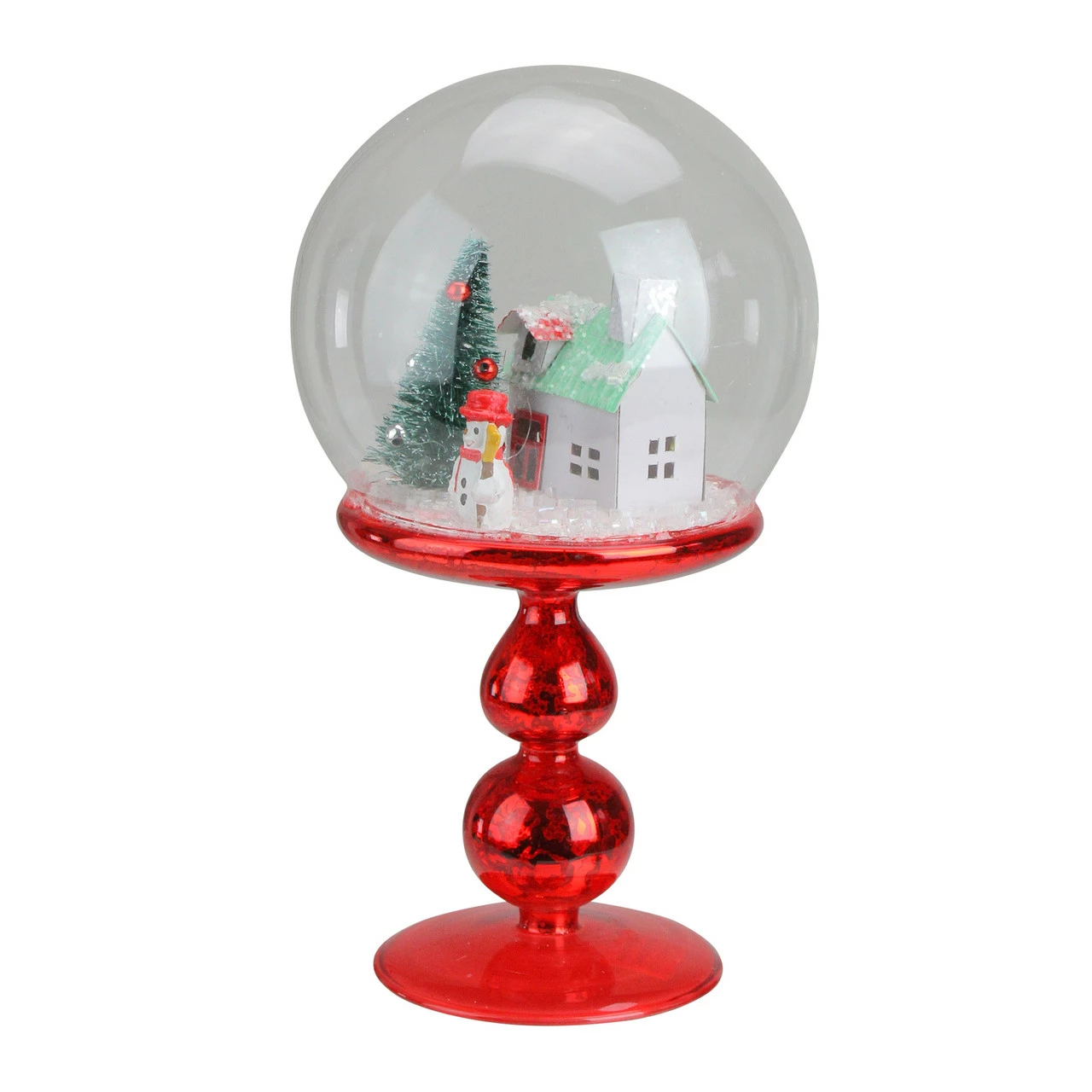 Holiday snow globe on a pedestal