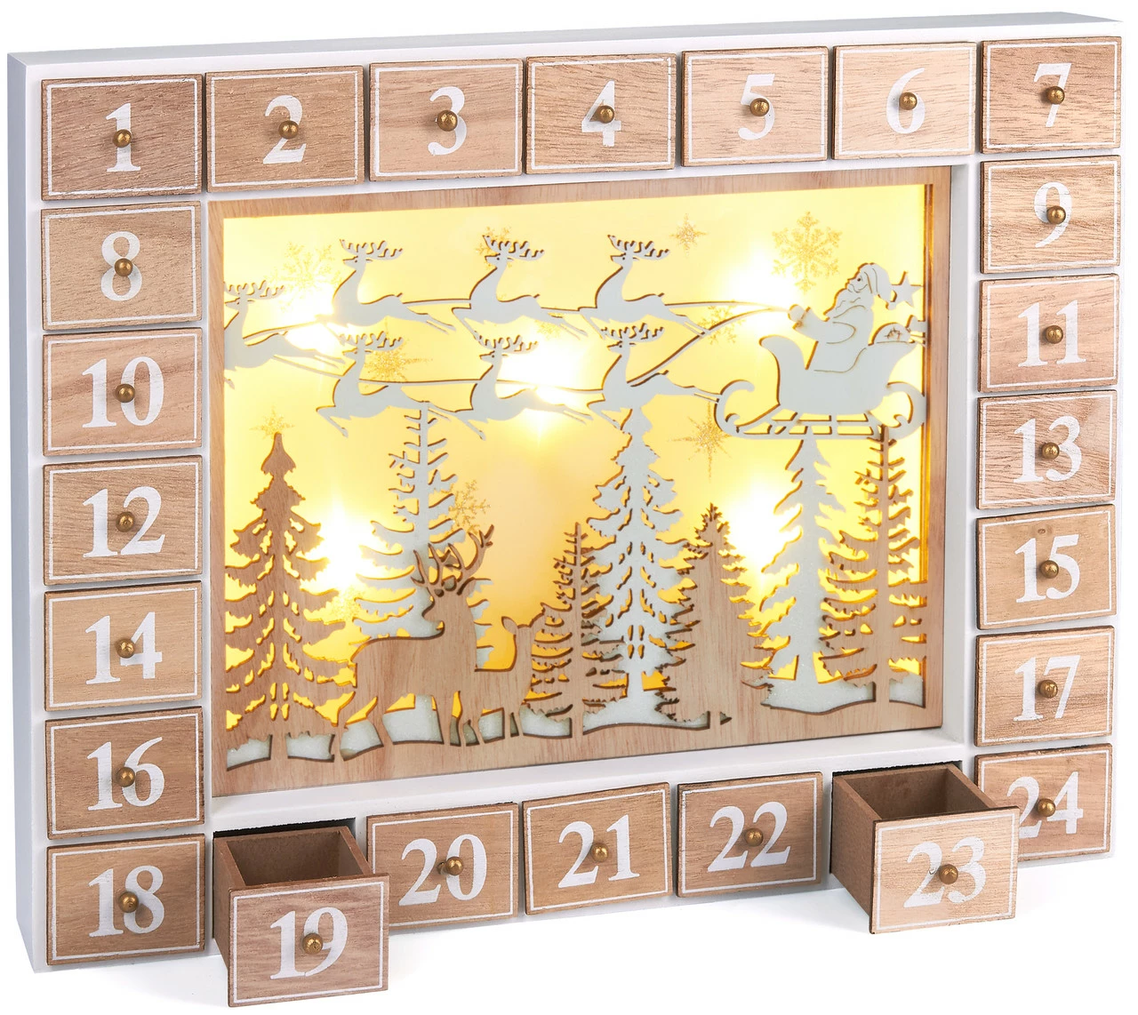 BRUBAKER reusable advent calendar made of wood for filling – Flying Santa Claus with LED lighting – Do It Yourself Christmas calendar