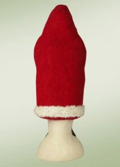 Mouse is posed in a Santa boot holding an artificial candy cane