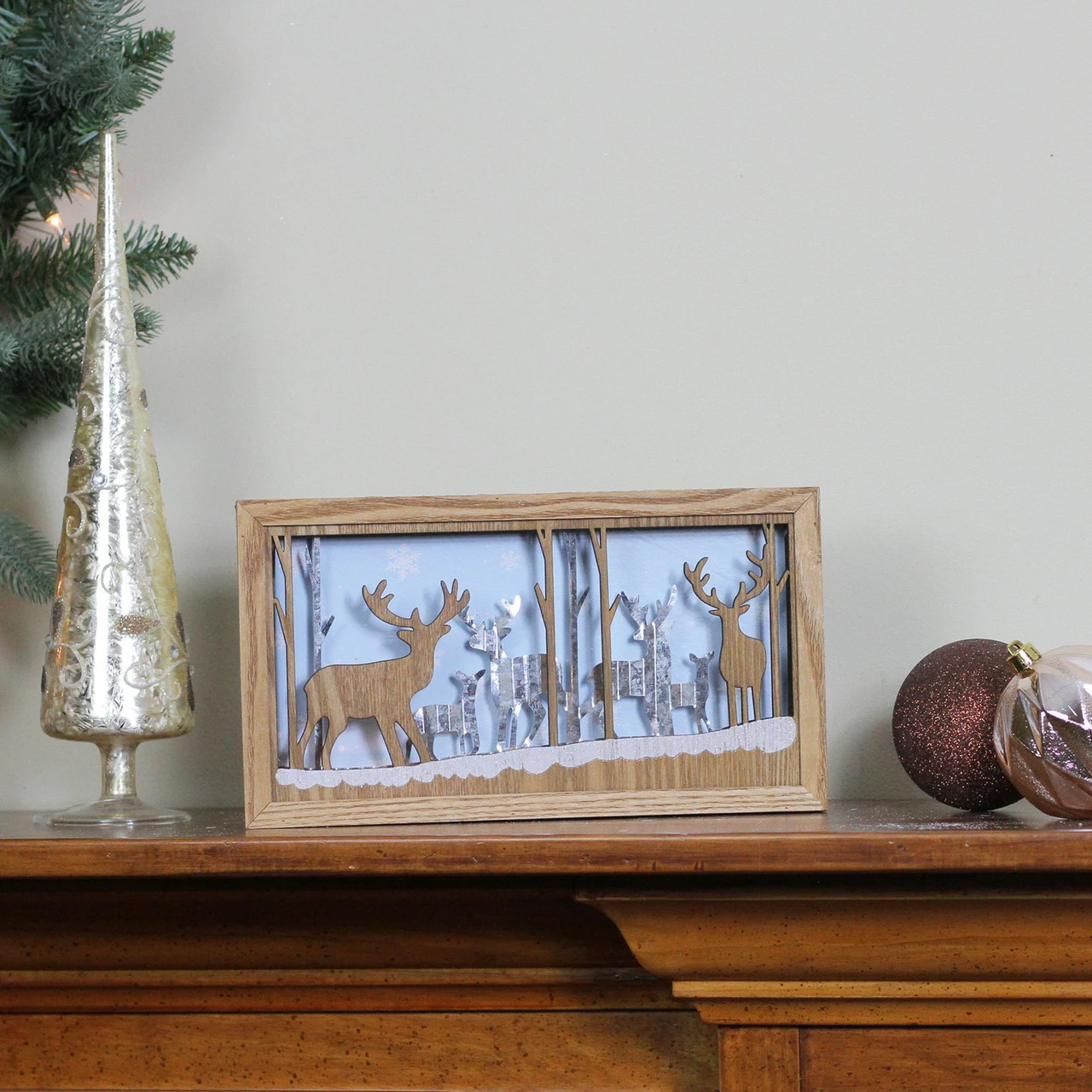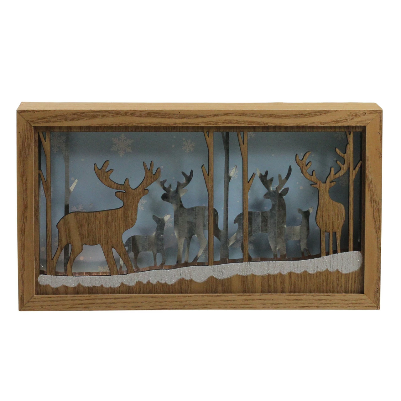 Includes wooden deer silhouettes layered over aluminum deer silhouettes