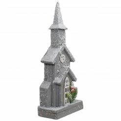 Northlight 16″ Lighted White And Gray Snowy Church Christmas Tabletop Decoration