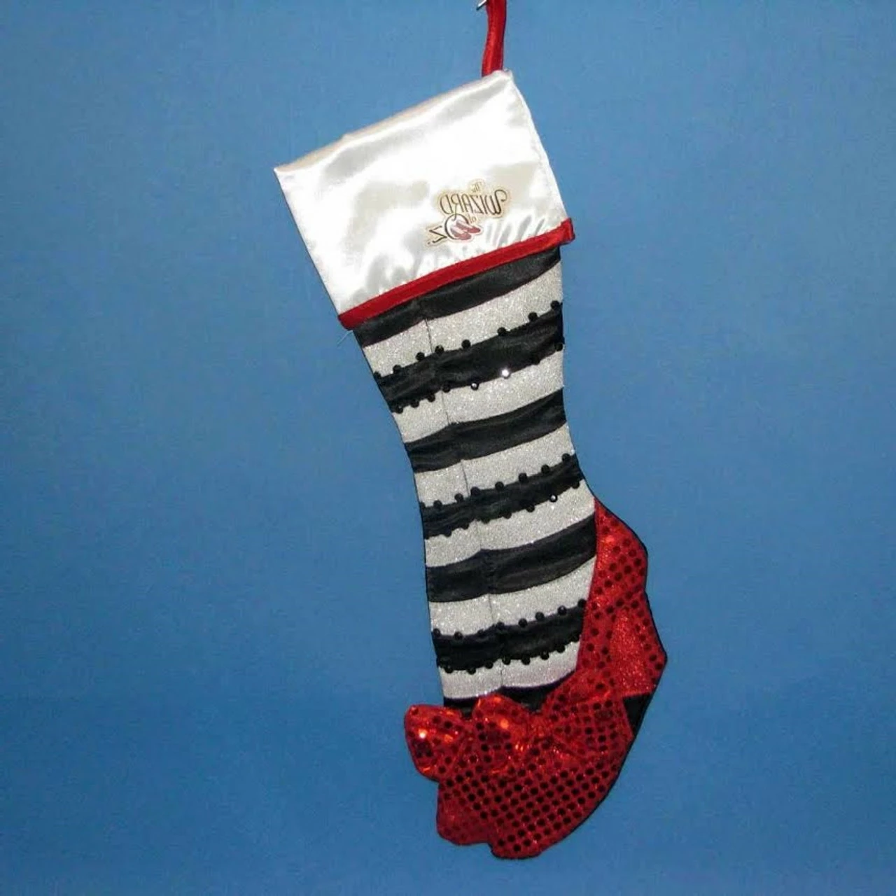 Iconic Wicked Witch of the East’s legs with the famous ruby red slippers