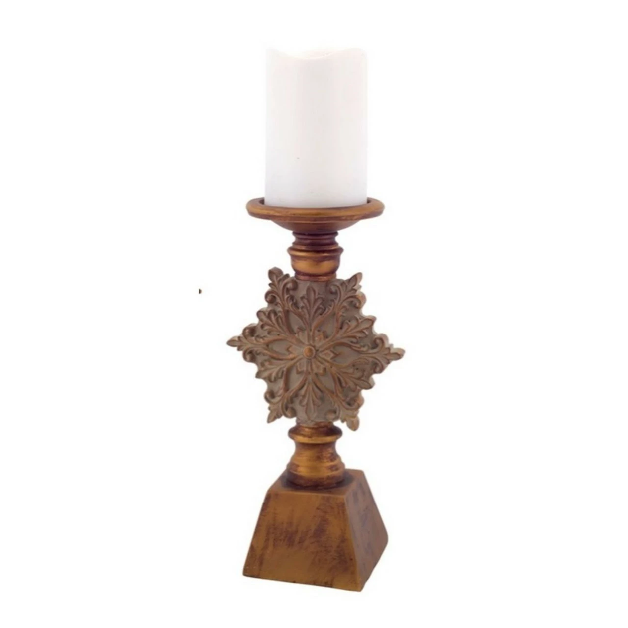 Distressed finish and an elaborate snowflake accent