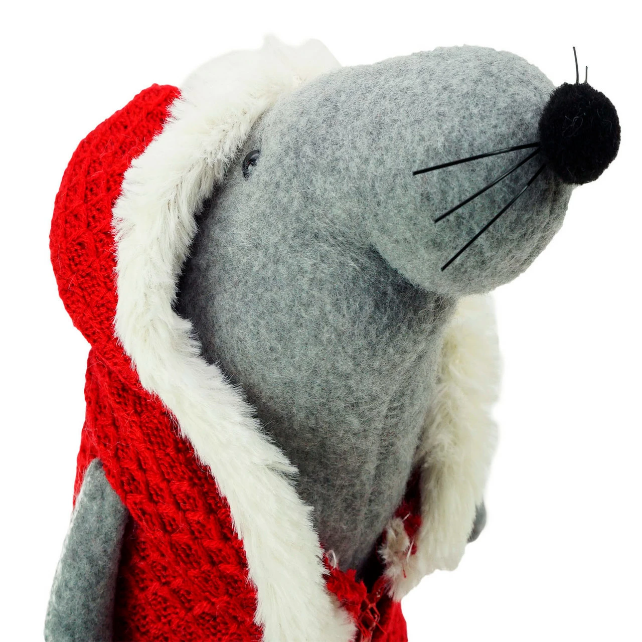 Beige colored heart is found near the bottom of the coat with a faux-fur lined hood