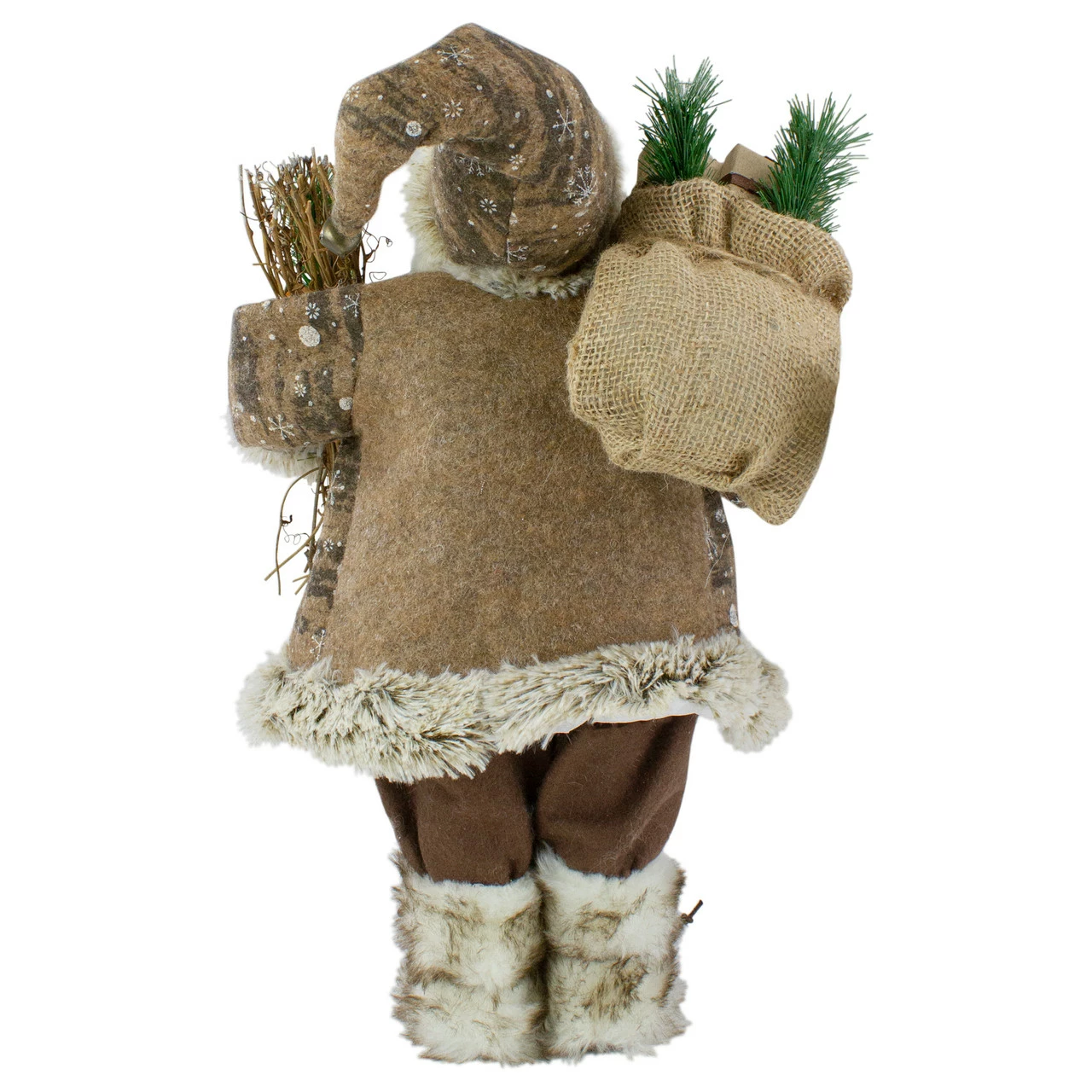 Matching brown coat and bendable hat with a jingle bell and faux fur trim