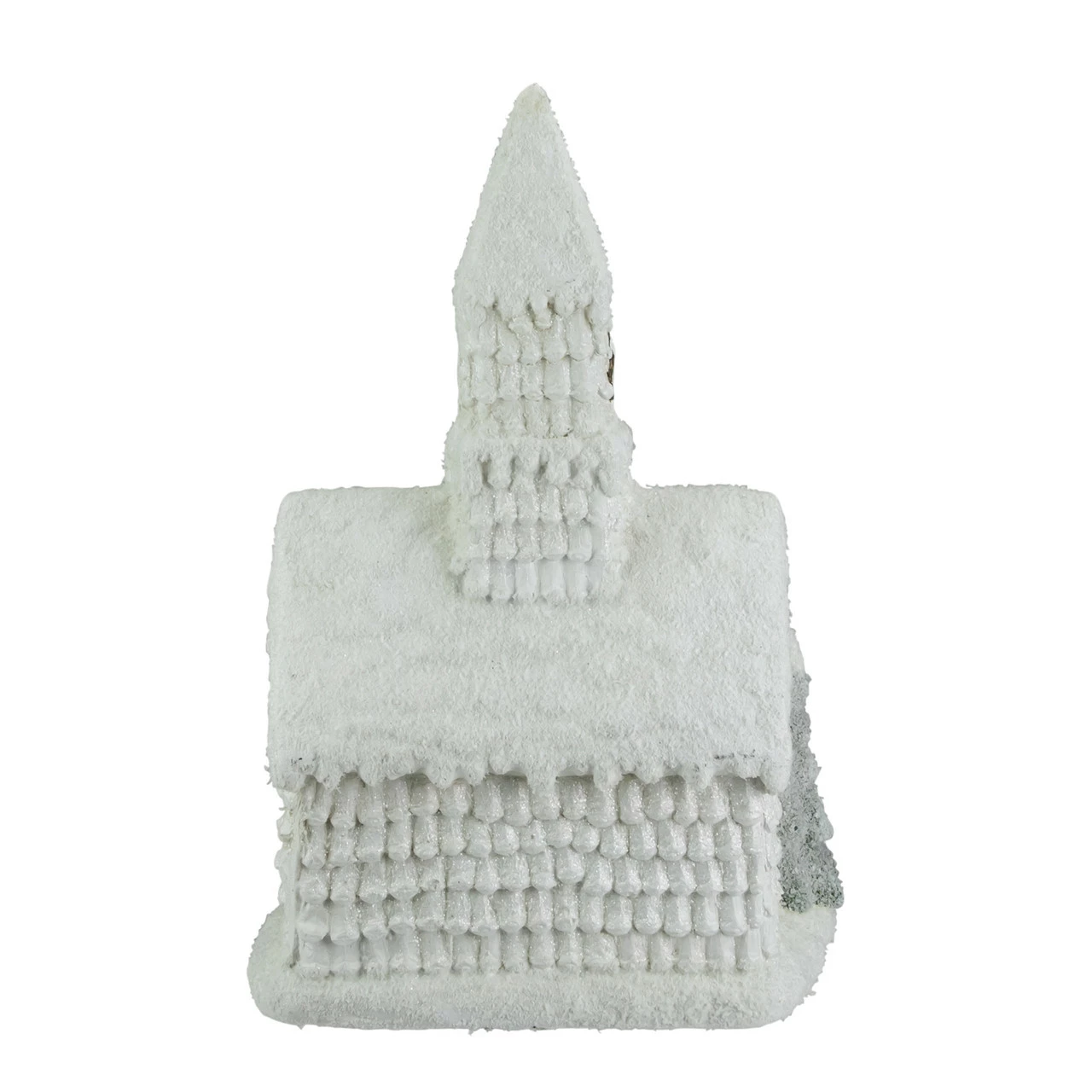 White glitter drenched, snow covered Church