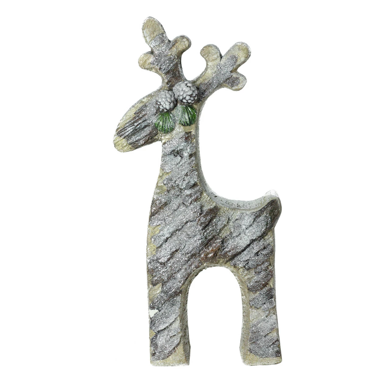 This lovely Christmas reindeer is dusted in glitter and accented with pine cones