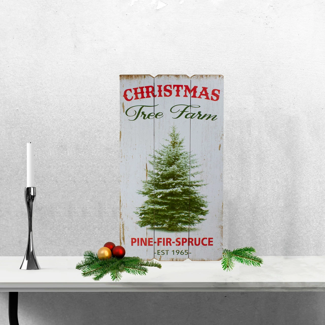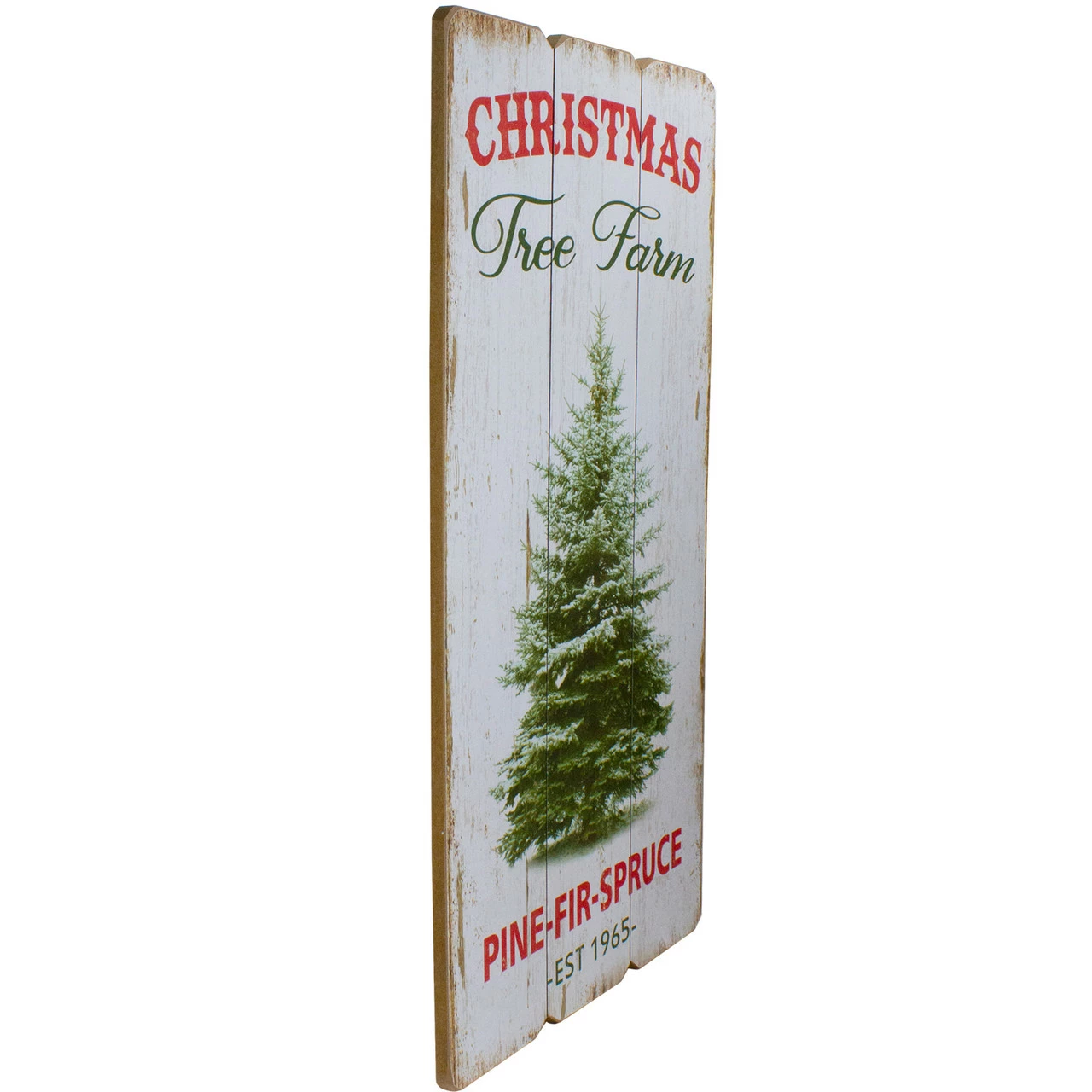 Sign reads ‘Christmas Tree Farm’ at the top and ‘Pine-Fir-Spruce EST 1965’ at the bottom