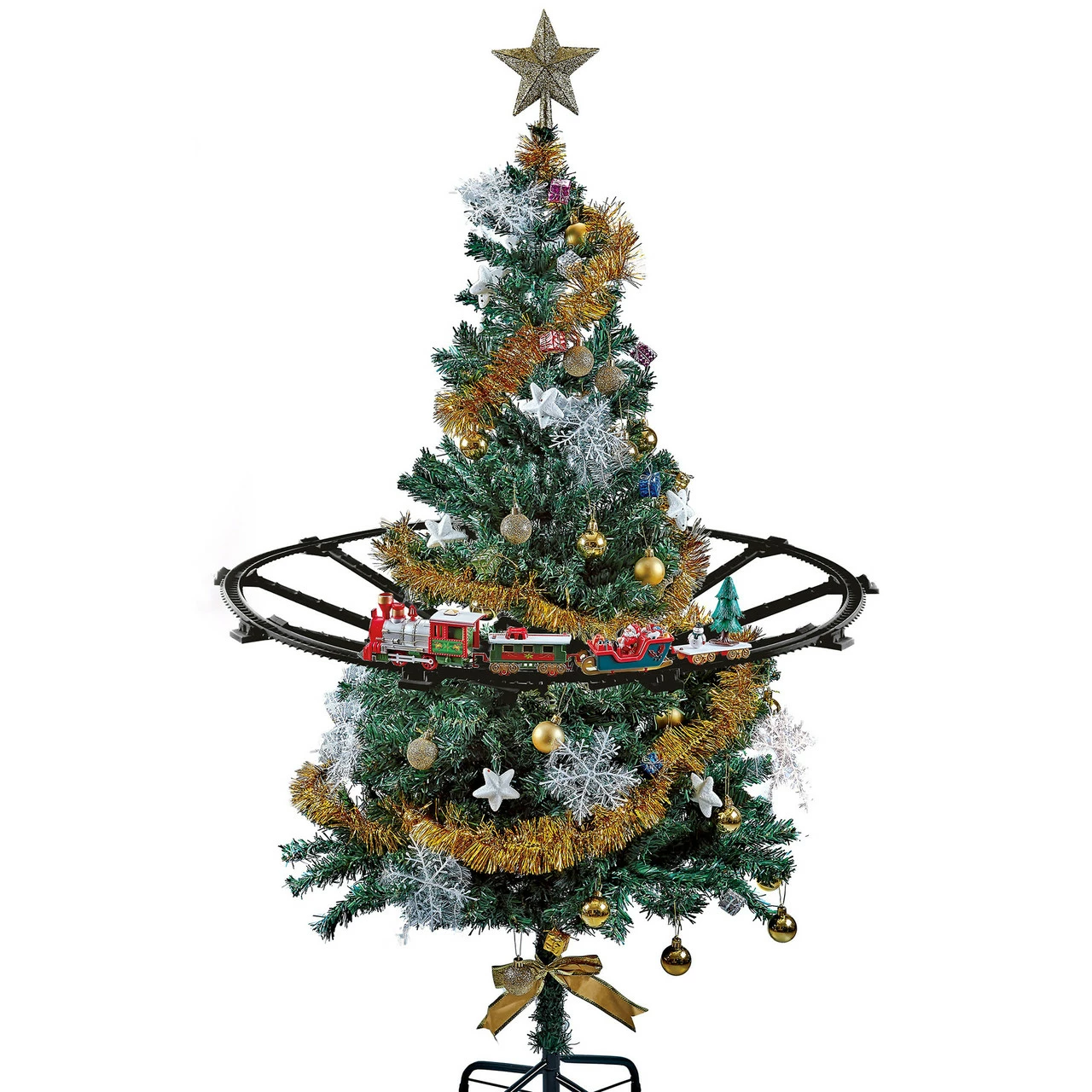 Includes 10 track holders and one adjustable piece to mount the tracks mid-air around your Christmas tree