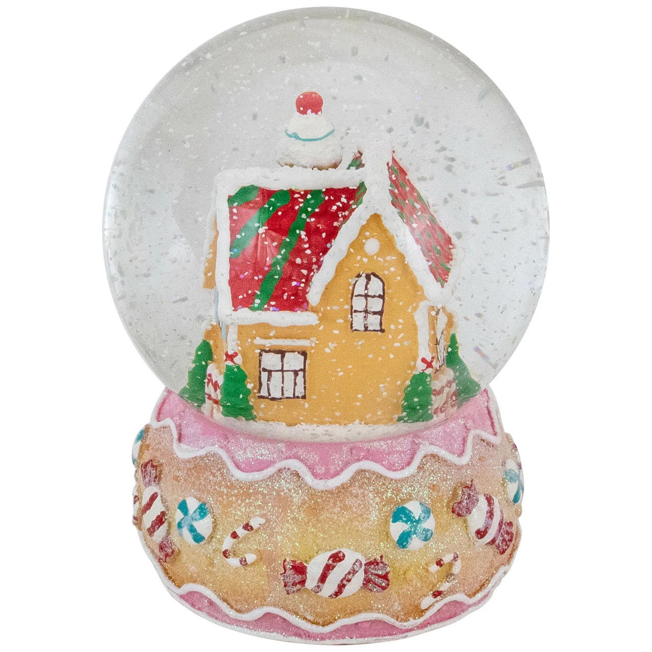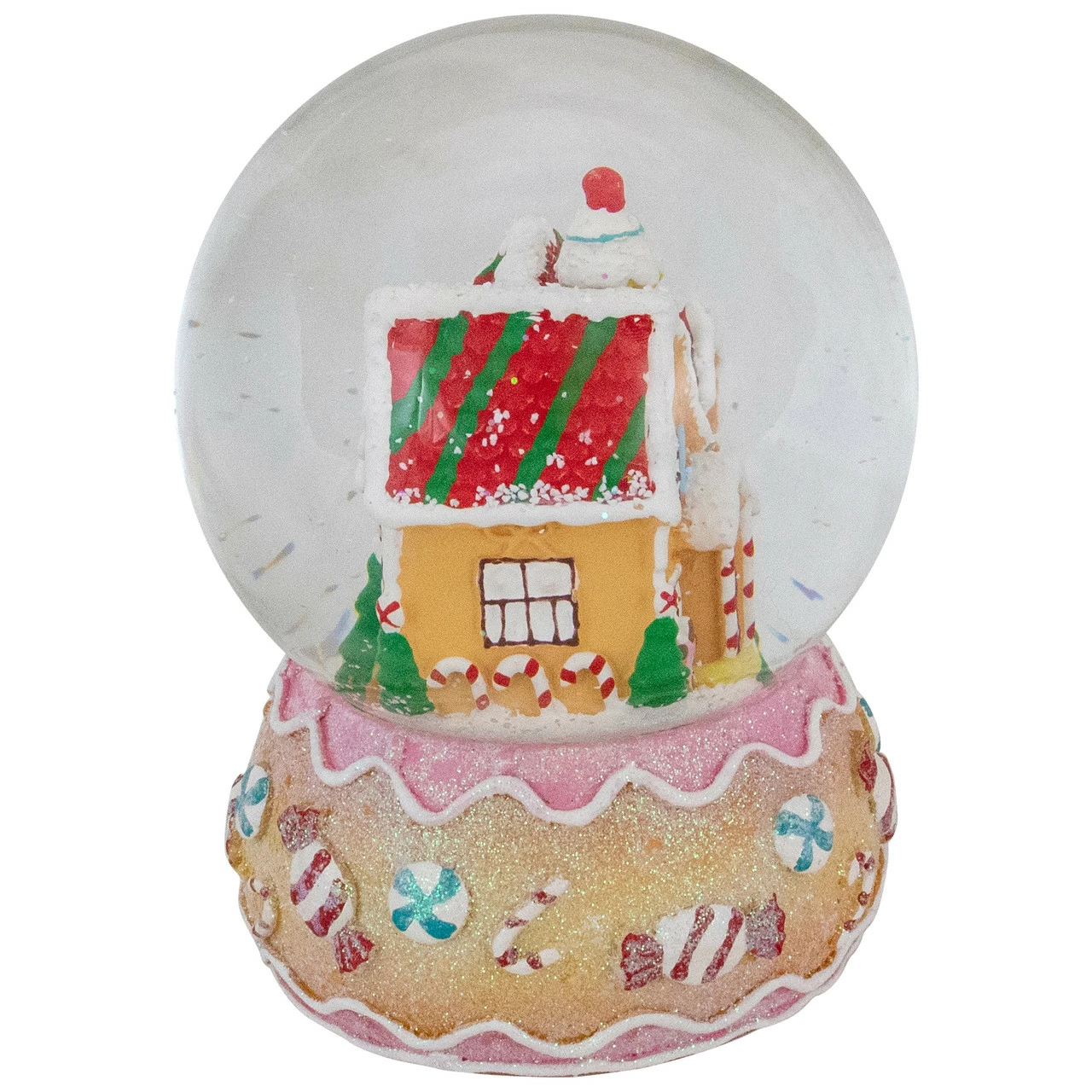 Globe interior features a detailed gingerbread house