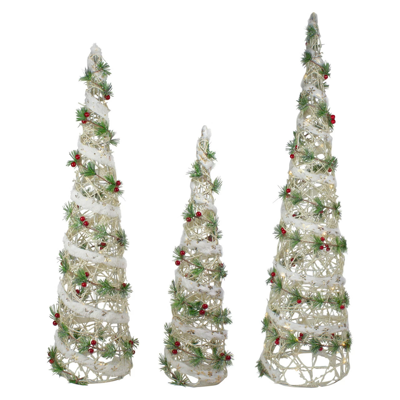 Northlight Set Of 3 Lighted White Berry And Pine Needle Cone Tree Christmas Decorations