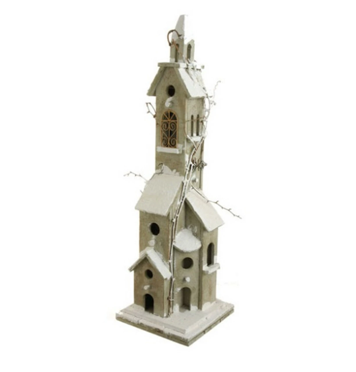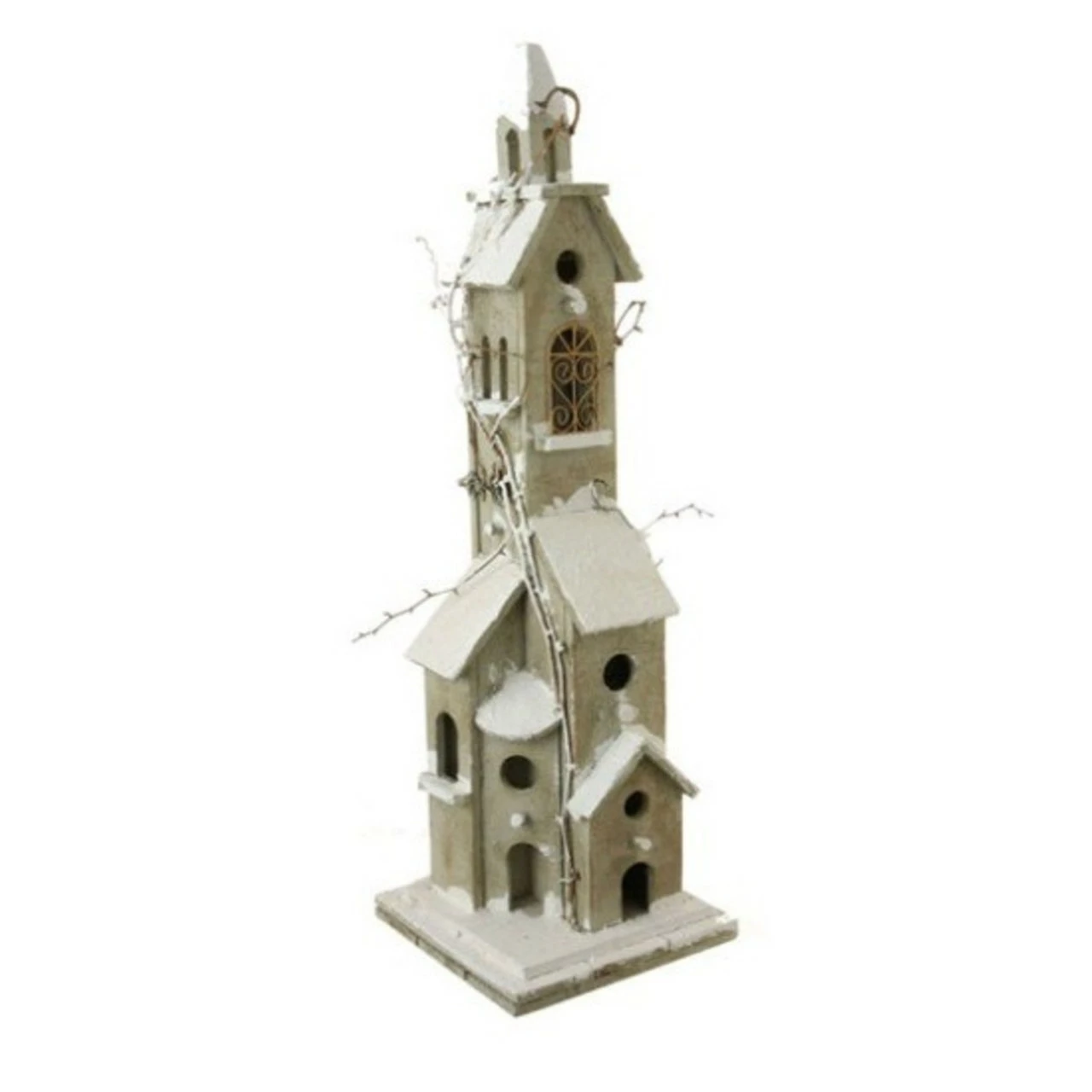 Lighted weathered vine accented birdhouse tabletop Christmas decor