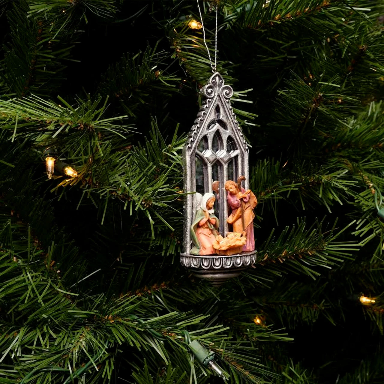 Ornament comes ready-to-hang on a silver cord