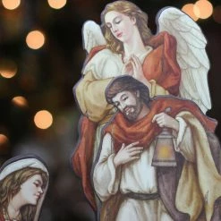 Features a nativity die cut figures for Christmas decoration