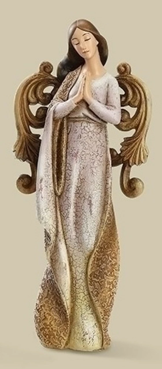 Peacefully praying angel is adorned in a beautifully draped gown