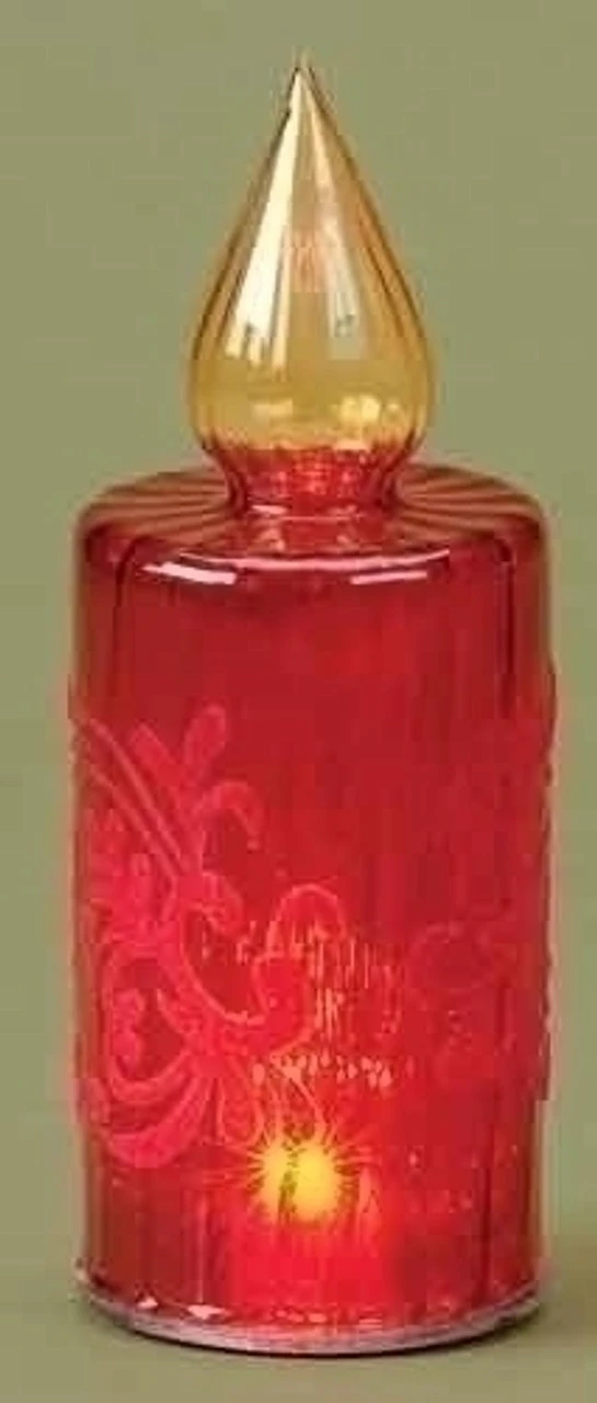 This delicate candle lamp glows softly from within and features a lush velveteen floral pattern