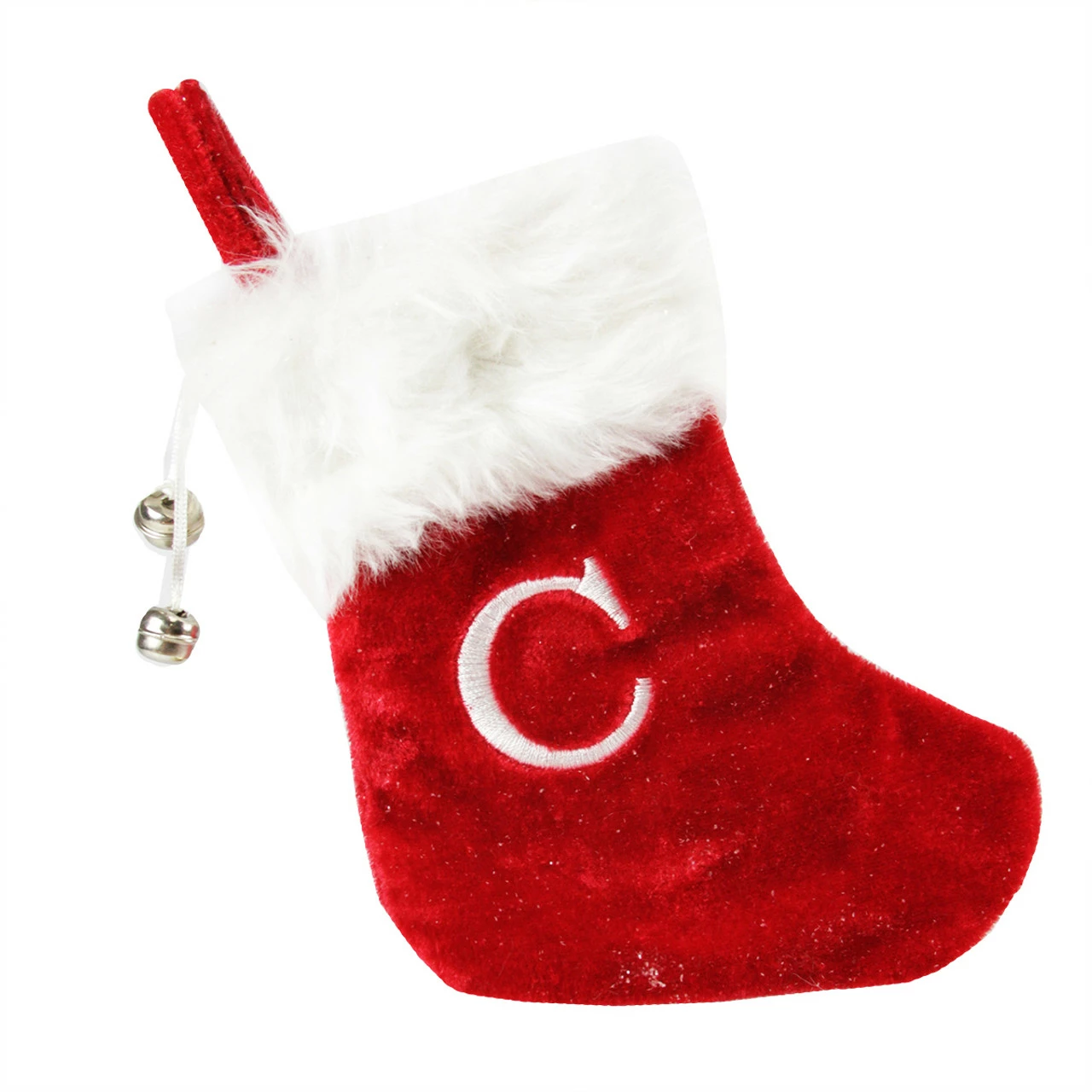 Red mini stocking comes with embroidered white “C”