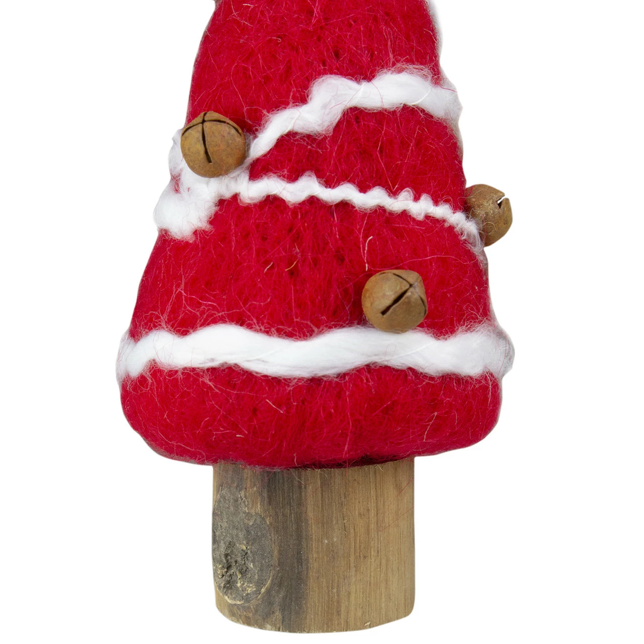 Features rustic jingle bells, a brown star, and a wooden stump